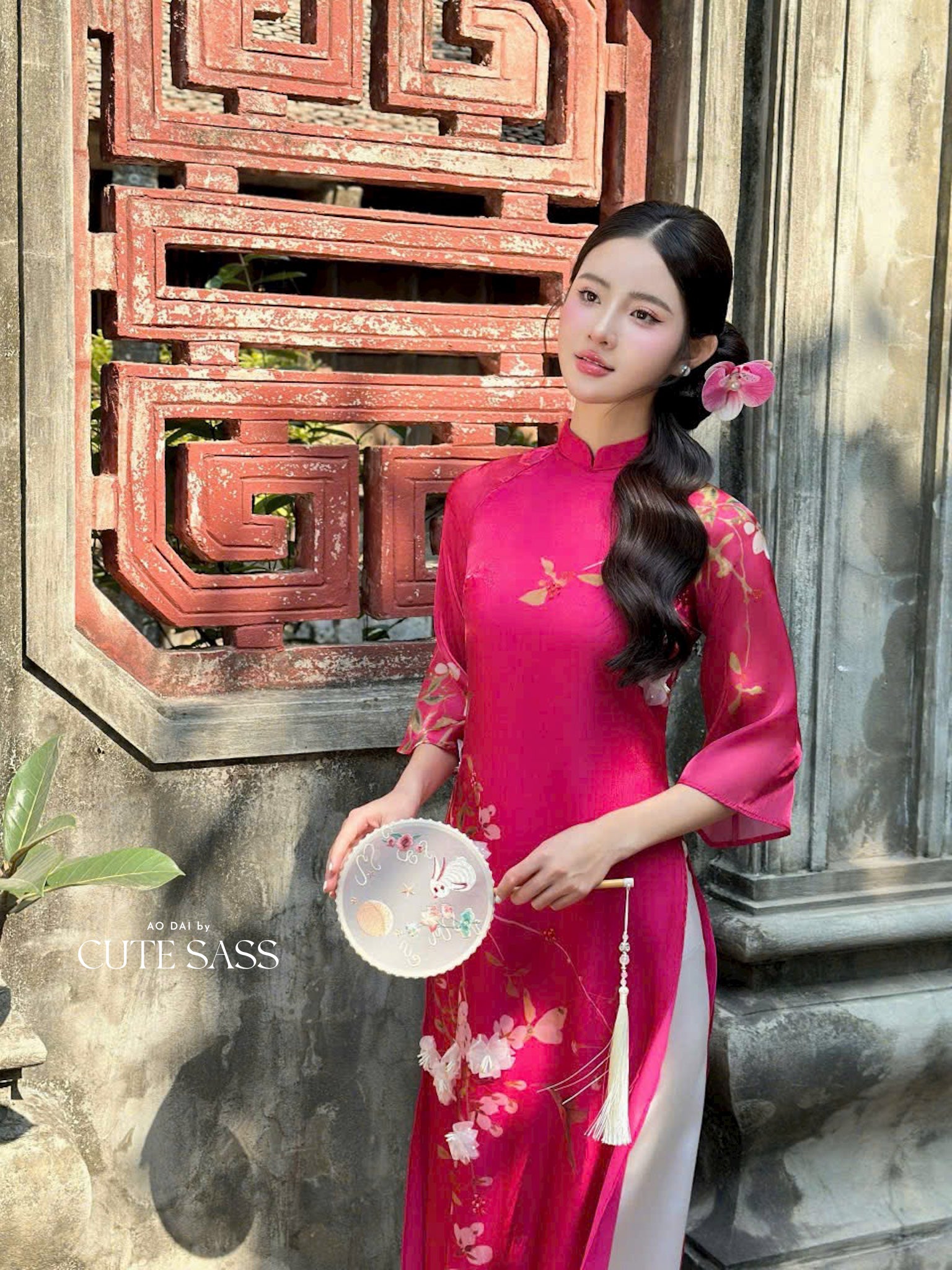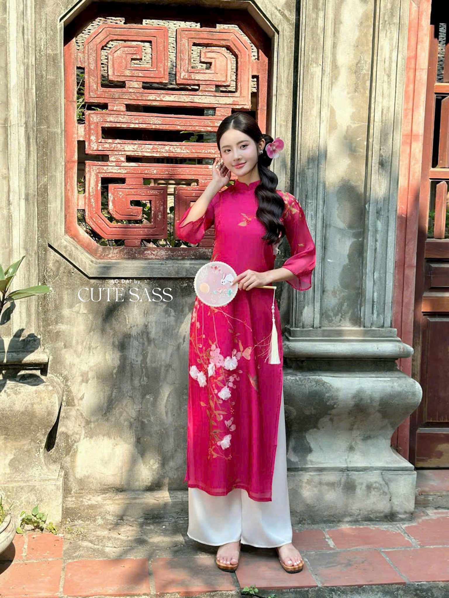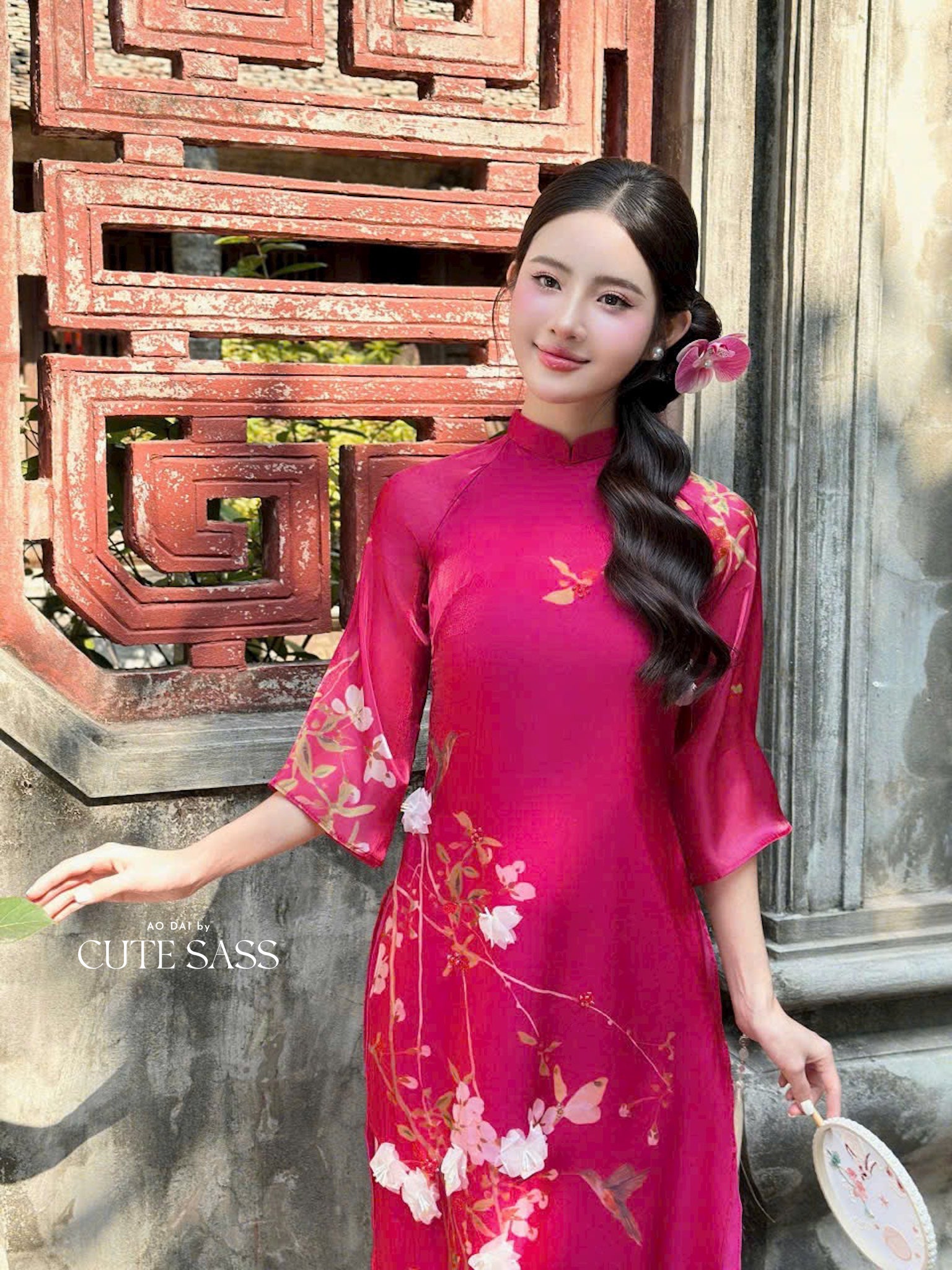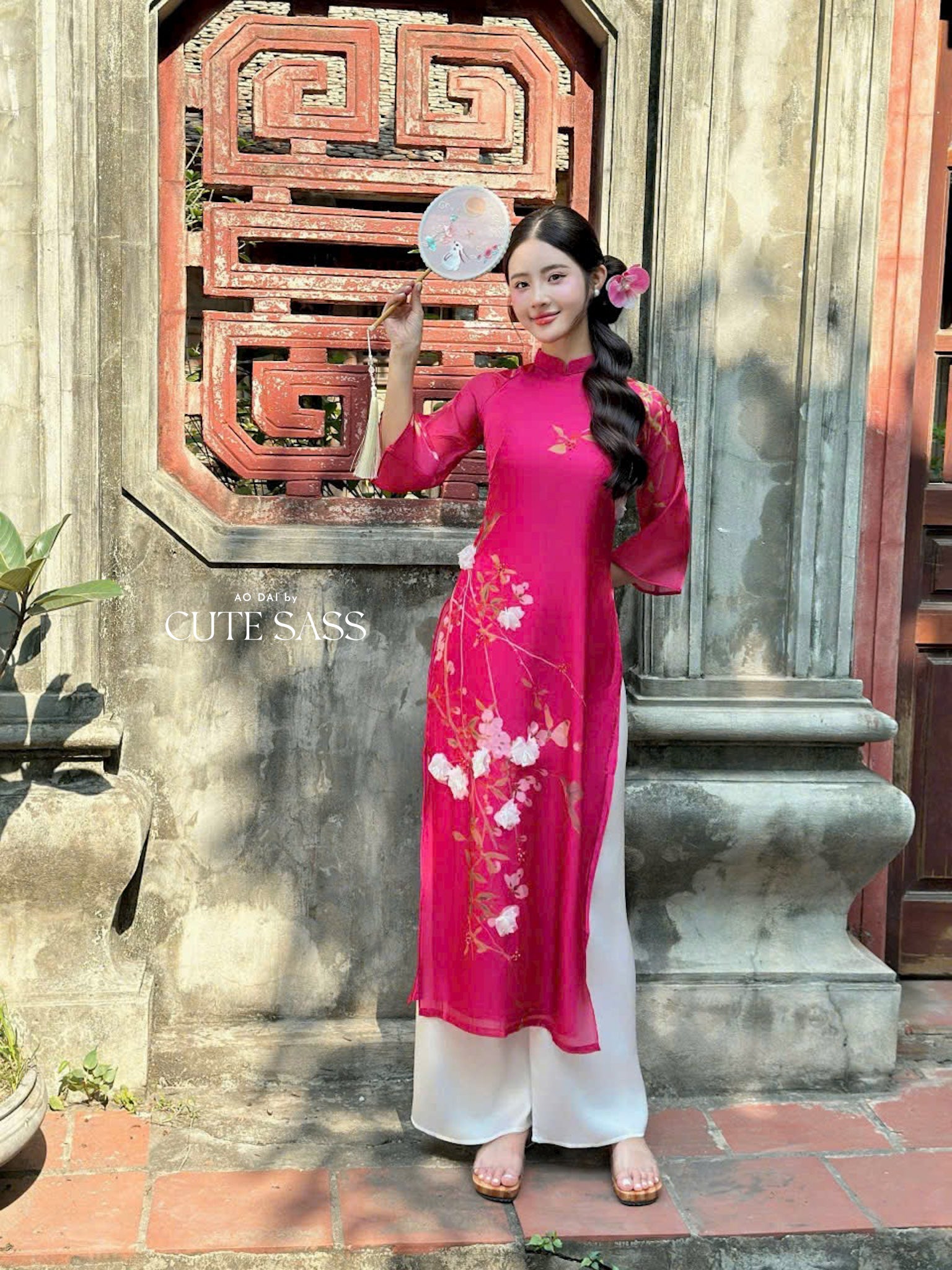 Fuchsia 3D Branches Ao Dai Set 1B