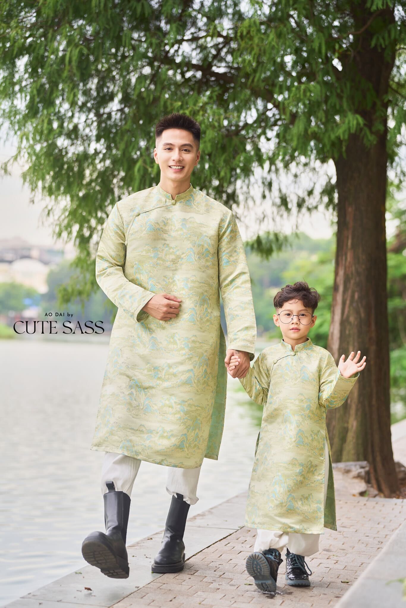 Men and Boy Light Green Mountain Matching Ao Dai 19D