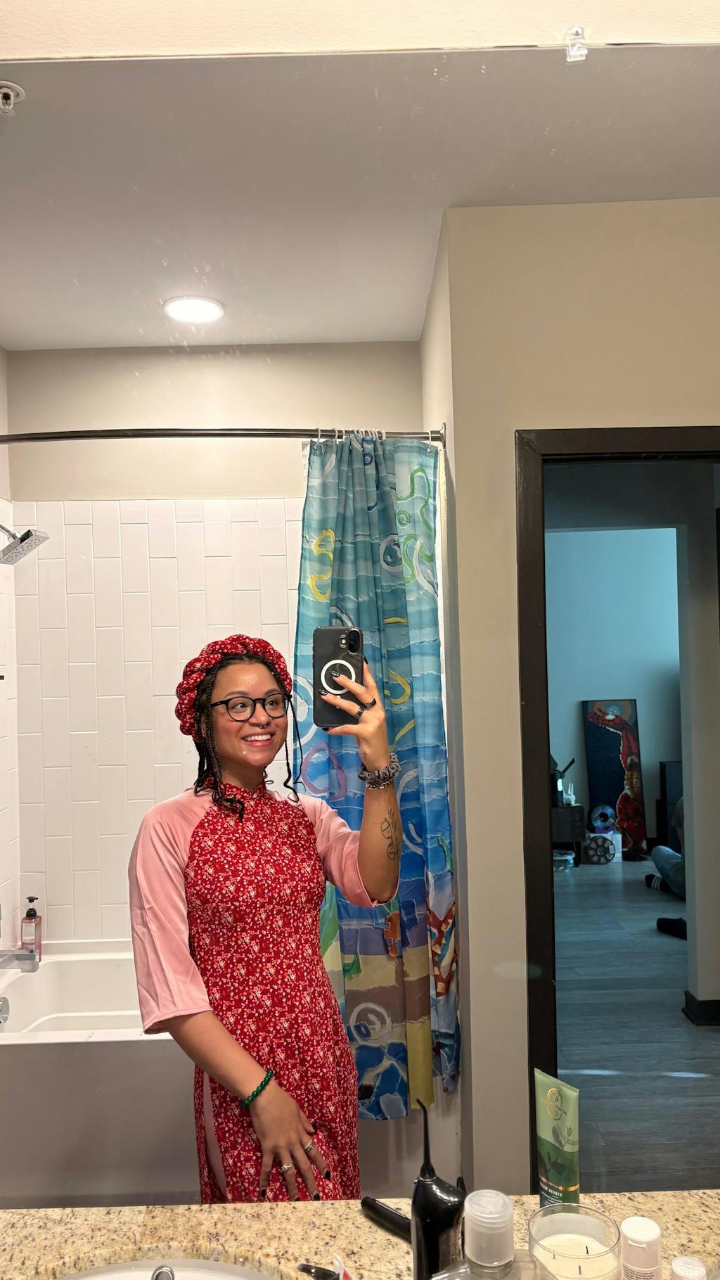 I will not lie. I started crying the moment I put it on. I never thought that I would be able to find an ao dai my size. I’ve gained so much weight in the past few years and I thought it would be hopeless to find something that looked remotely DECENT. I haven’t worn an ao dai in maybe 20 years and, with a little push from my partner, I decided that I wanted to surprise my family my wearing one for Tet this year. I’m so glad I found your store. Thank you so much! I will be buying again!!