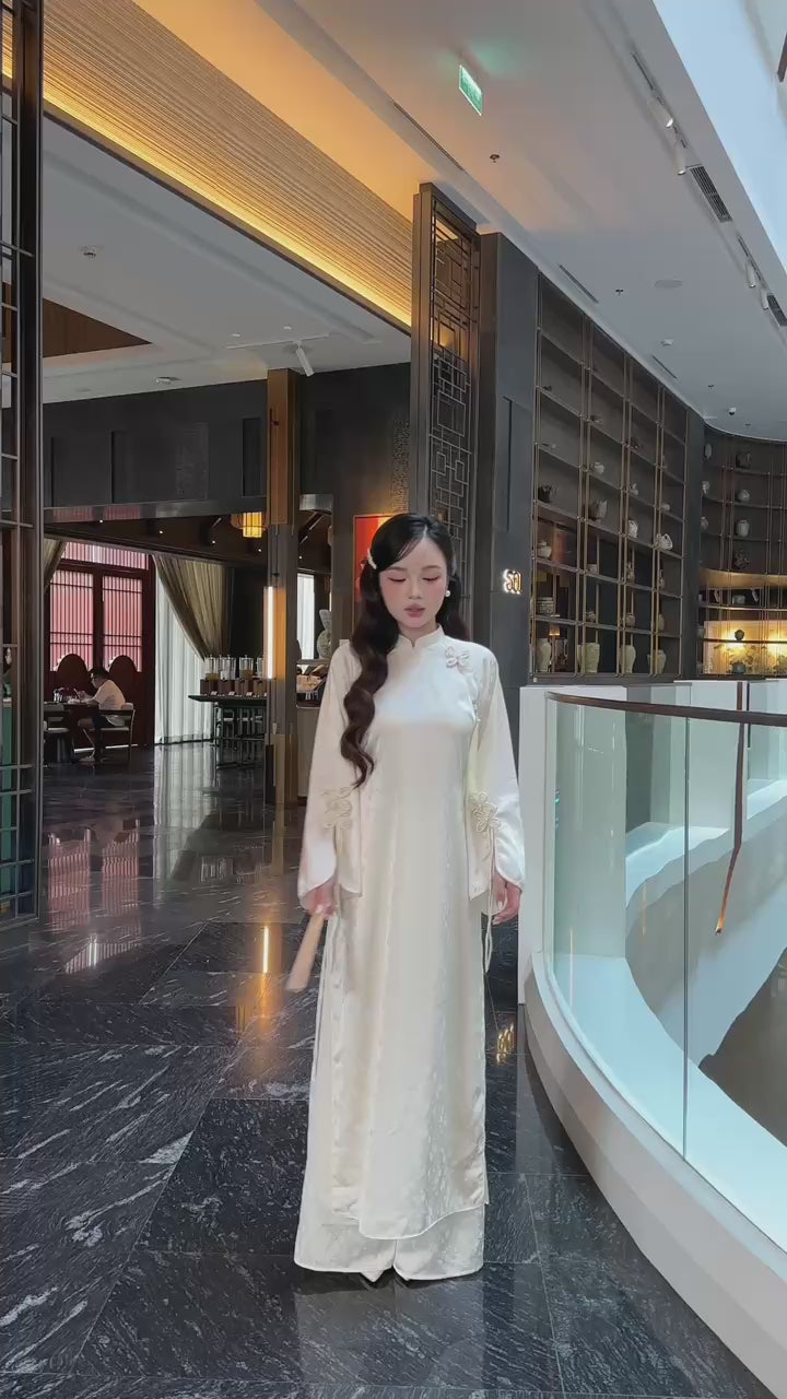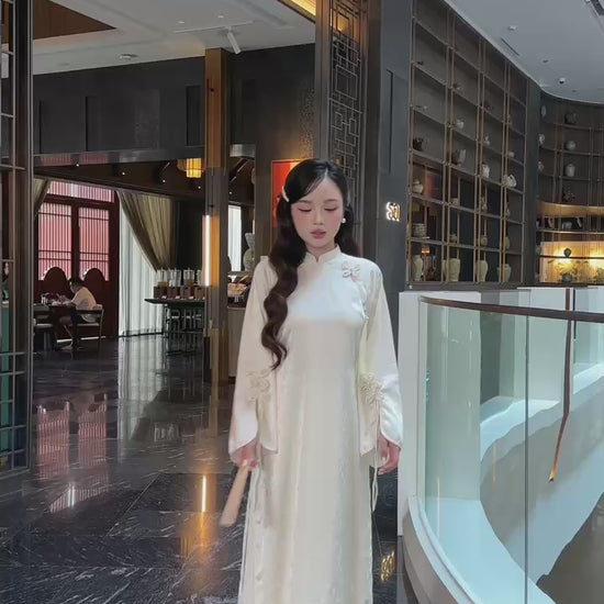 Linh Vy - Cream Vows Long Sleeve Bows Ao Dai Set