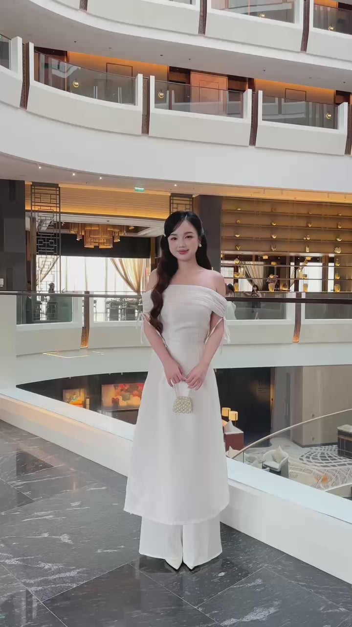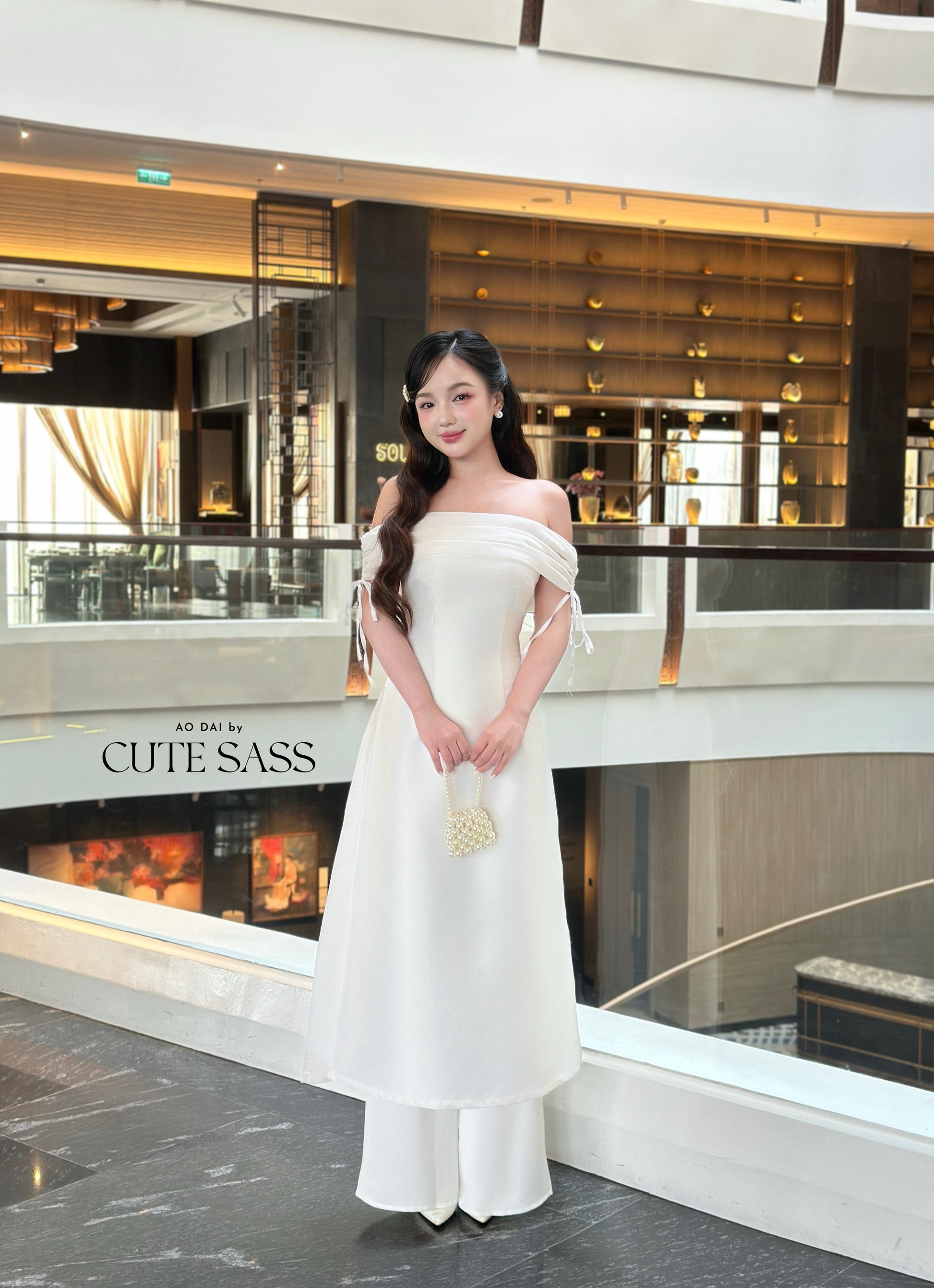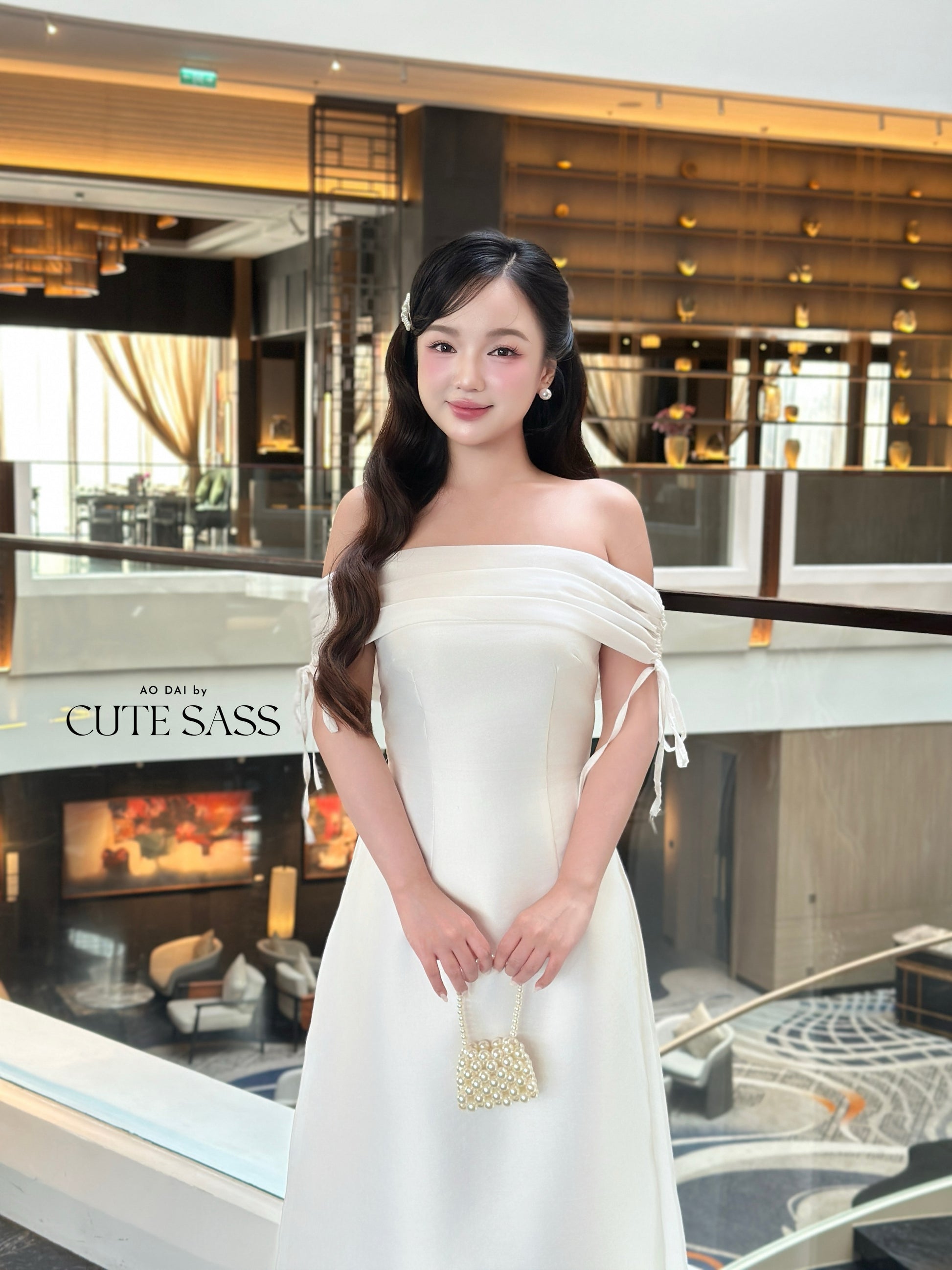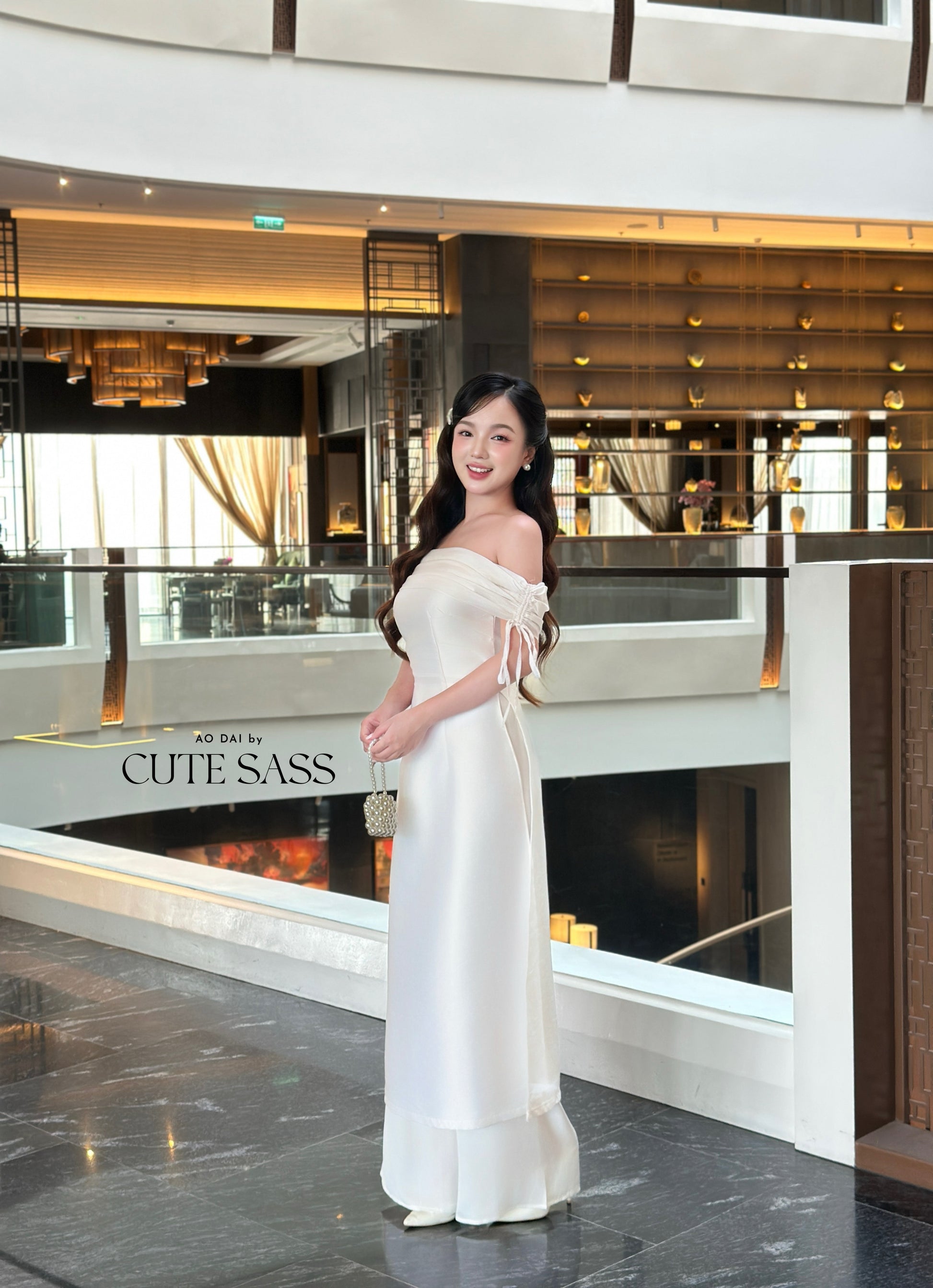 Linh Vy - Aura White Off the Shoulder Ao Dai Top Only, No Pants