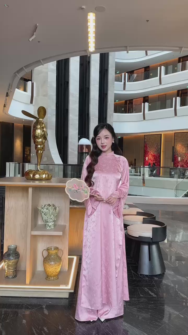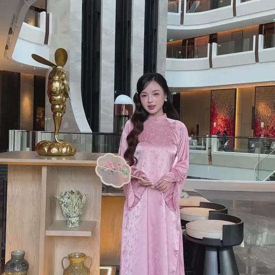 Linh Vy - Pink Vows Long Sleeve Bows Ao Dai Set