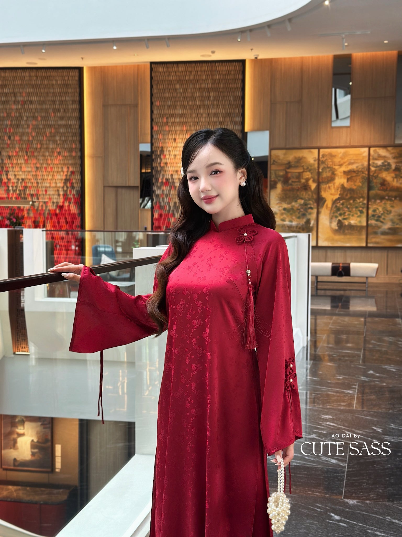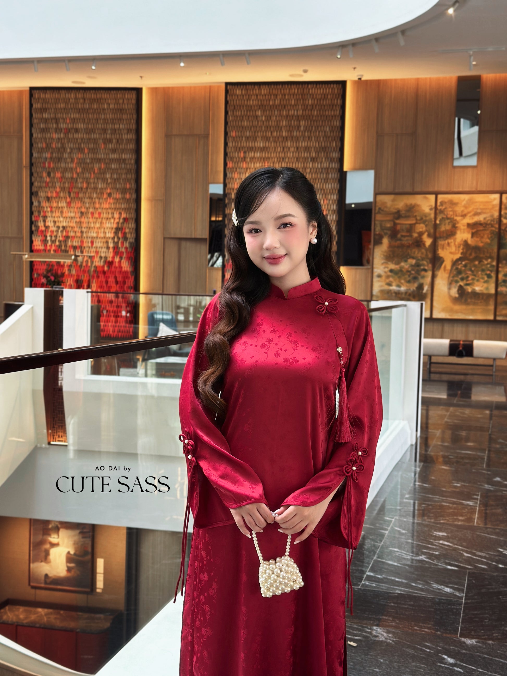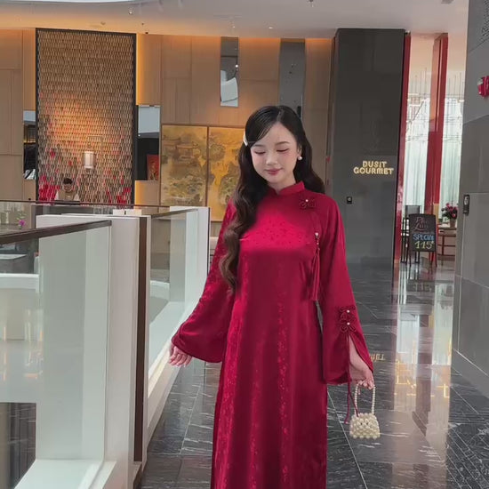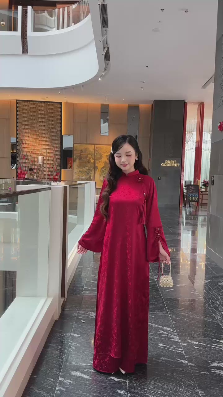 Linh Vy - Red Vows Long Sleeve Bows Ao Dai Set