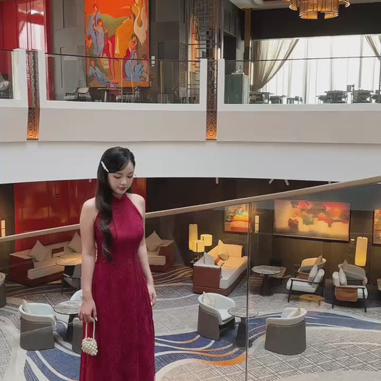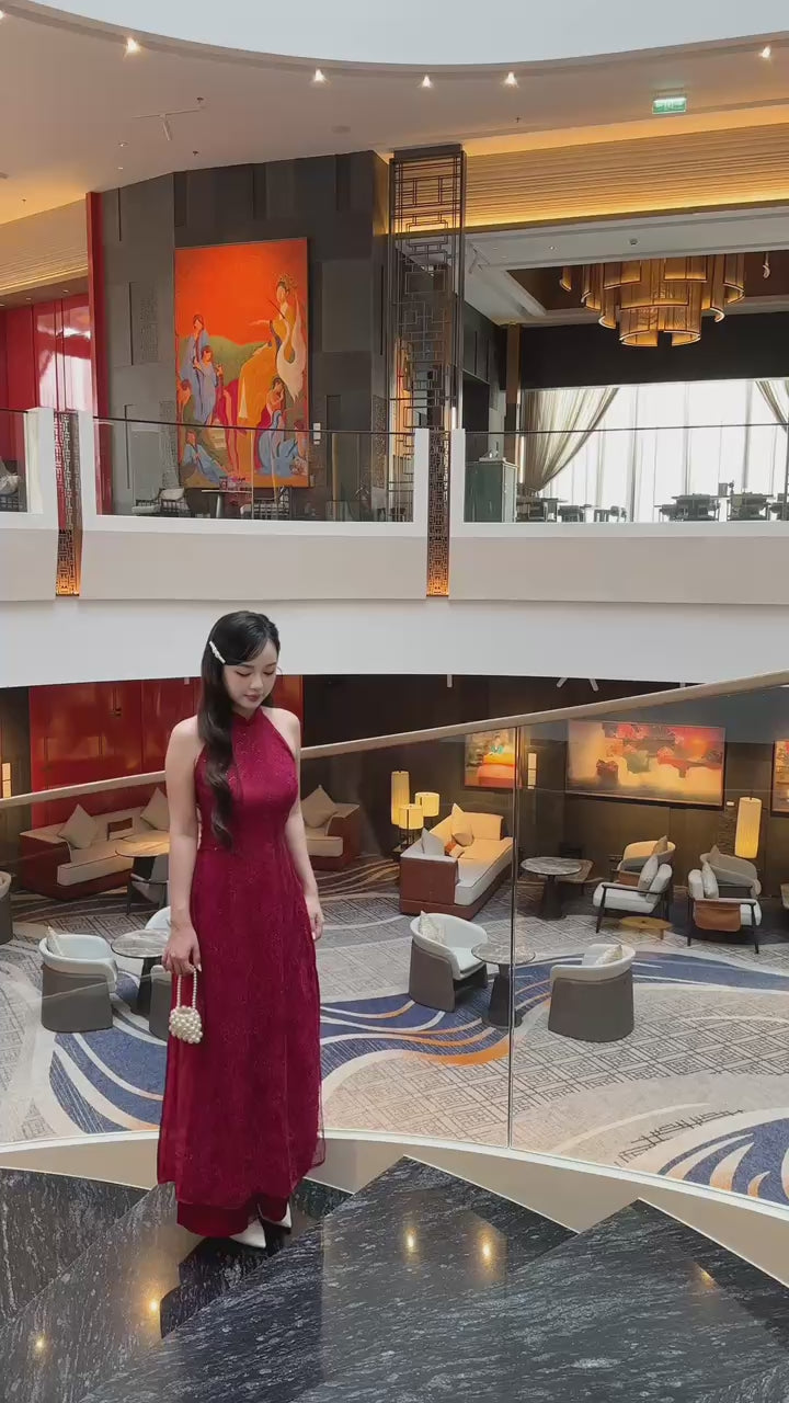 Linh Vy - Red Lace Sparkle Yem-Inspired Ao Dai Set