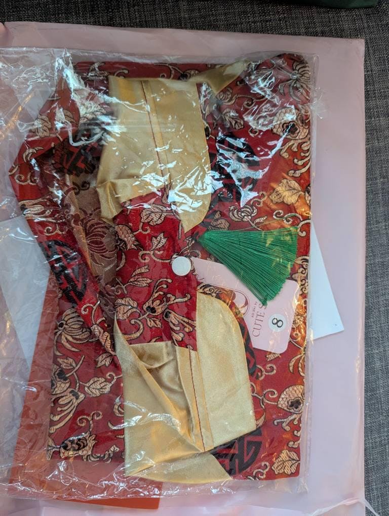Great quality item! Beautifully made. Fast shipping too. I bought a size up (size 8 instead of 7) cuz my dog has an oddly shaped body. It was a bit big but still looks nice. He's all ready for Lunar New Year!