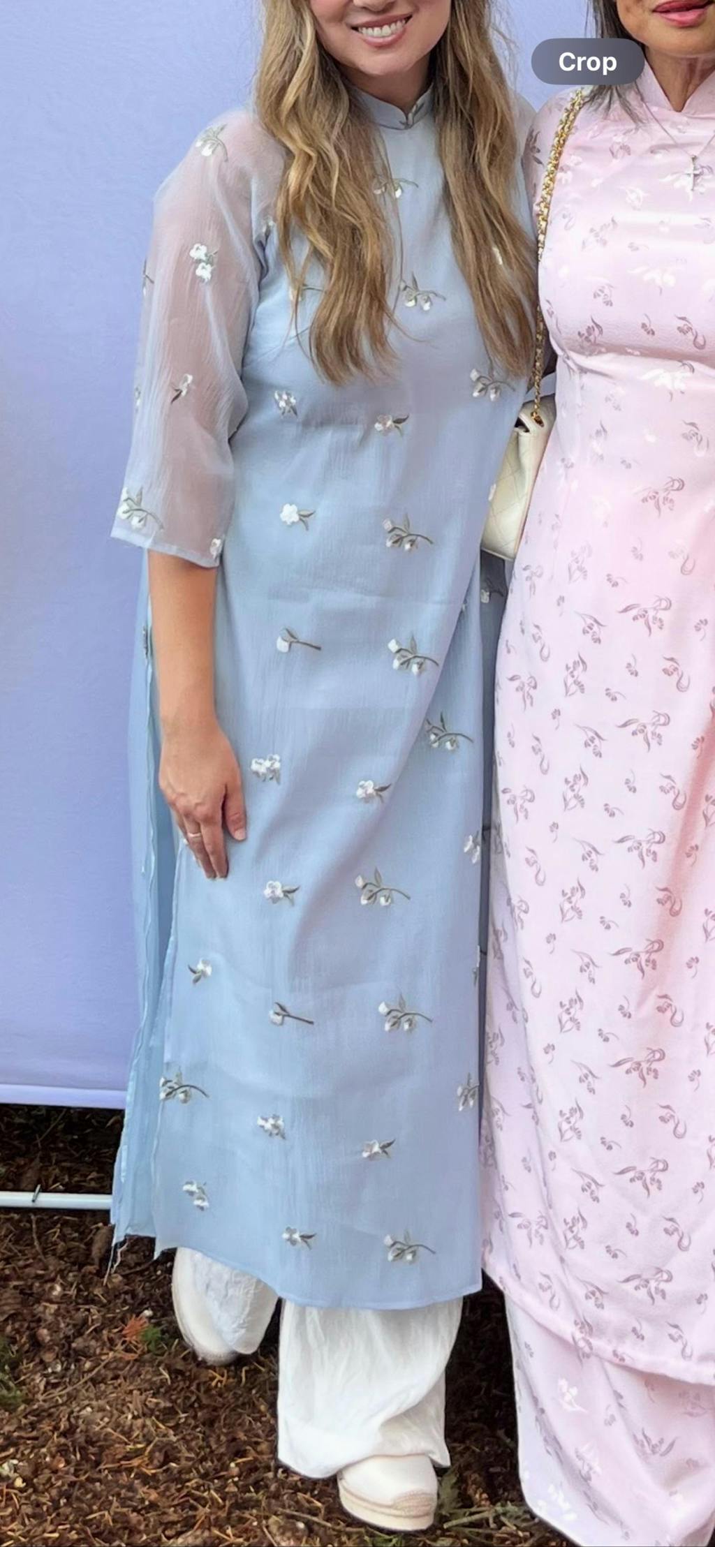 Shifted Blue Chiffon Embroidery Lilac Ao Dai Top Only, NO PANTS 5C