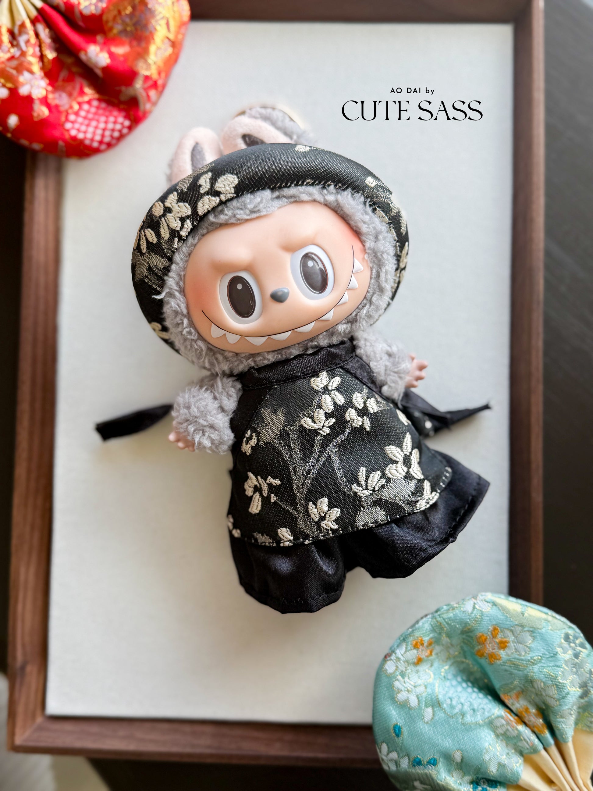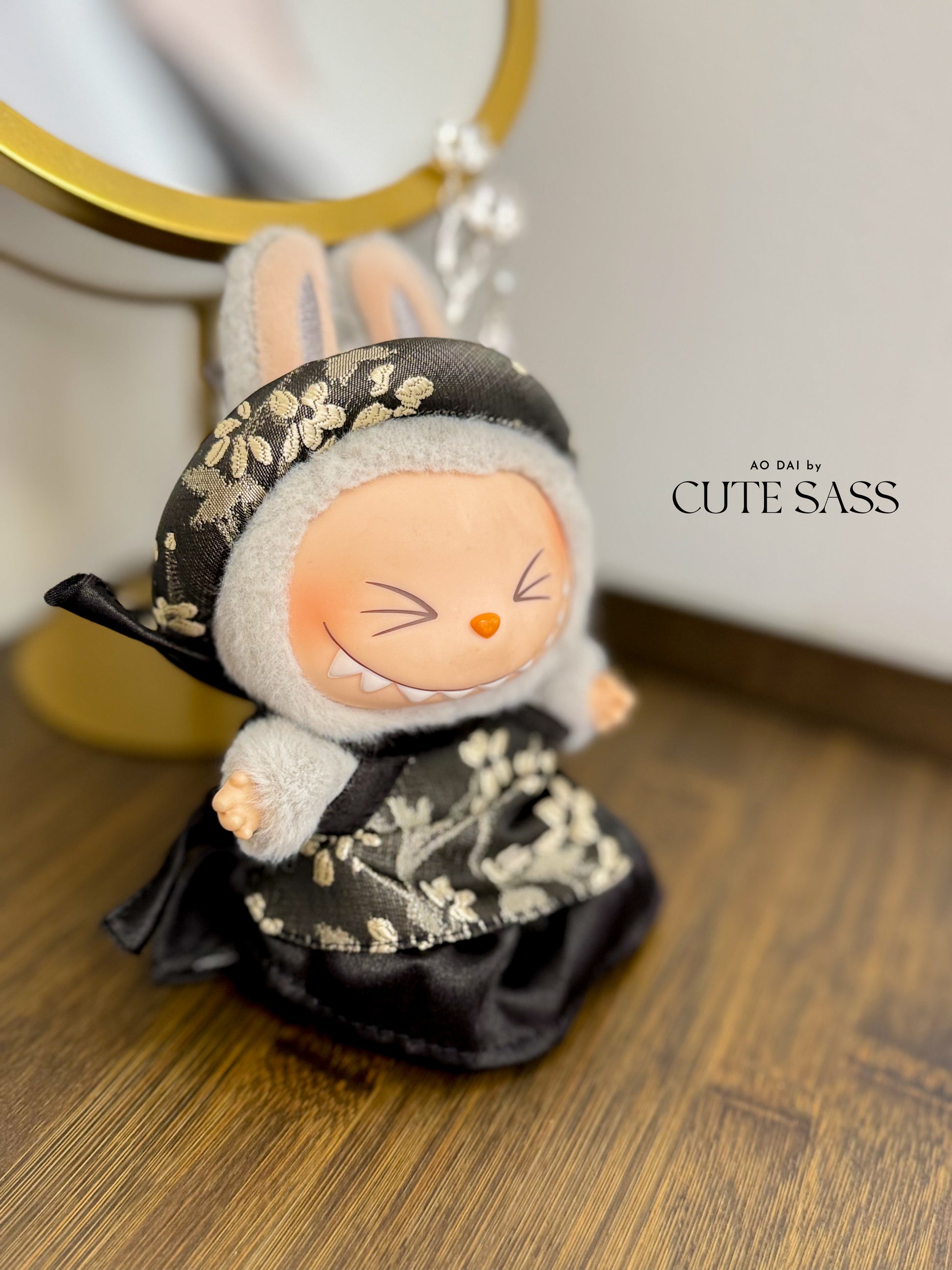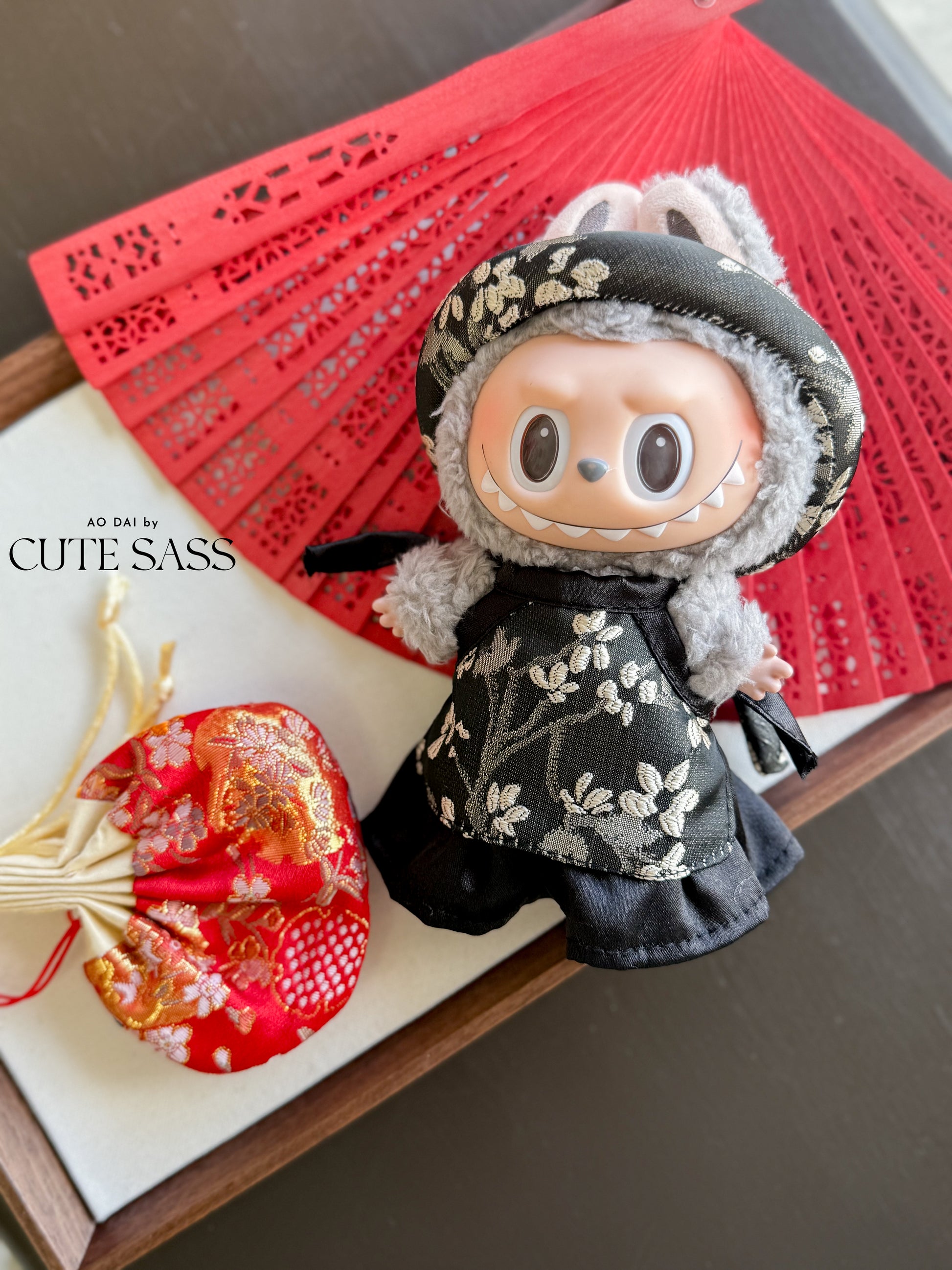 Black/Gold Eclipse Yem-Inspired Vietnamese Ao Dai Set for Labubu – Includes Pants & Headband (Doll Not Included)